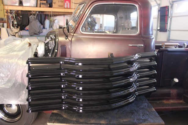 Soon (tomorrow?), the grill will finally find its way back home on the old 1950 Chevy 3100 Pickup Truck she started her journey on, only now she’ll look prettier than she used to. (Thanks, Mark! You know my heart was stuck on chrome, but now that I see her paired up with the rest of the truck, I think it’s a match made in heaven.)