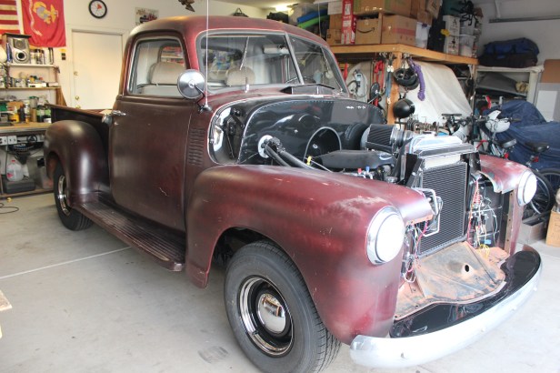 I should have known, Mark still has not recovered from a severe case of “truck rebuild on the brain.” I’m not dissin’ him. When it comes to this 1950 Chevy 3100 Pickup Truck Rebuild (1950 Chevy 3100 Vintage Truck Restore/Rebuild_1: Committing to the Project ), it may have started out as an “us” project, but it is most certainly a Mark project. Too many aspects of this project have required Mark’s wide and deep knowledge and life experience to make it all just right. I’ve been watching in amazement on the sidelines, oohing and aahing at his fine engineering and immense patience in working out the zillions of unexpected kinks in this once-in-a-lifetime project. (Mark SWEARS he will NOT be doing a project like this EVER again!)