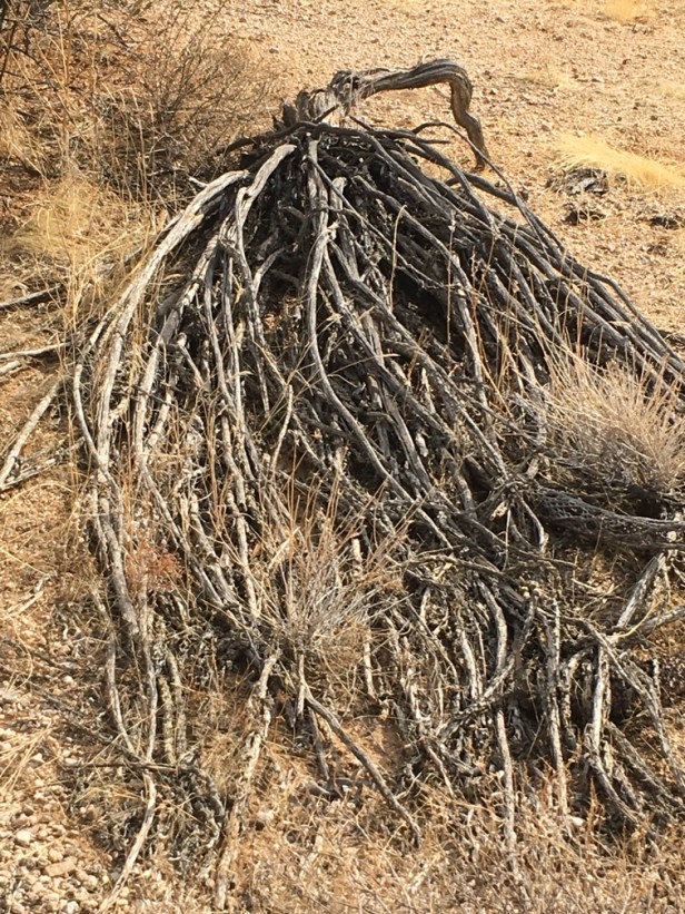 This creature, a female, no doubt, lifts her dressing gown as she makes her way among cactus and coyote . . .