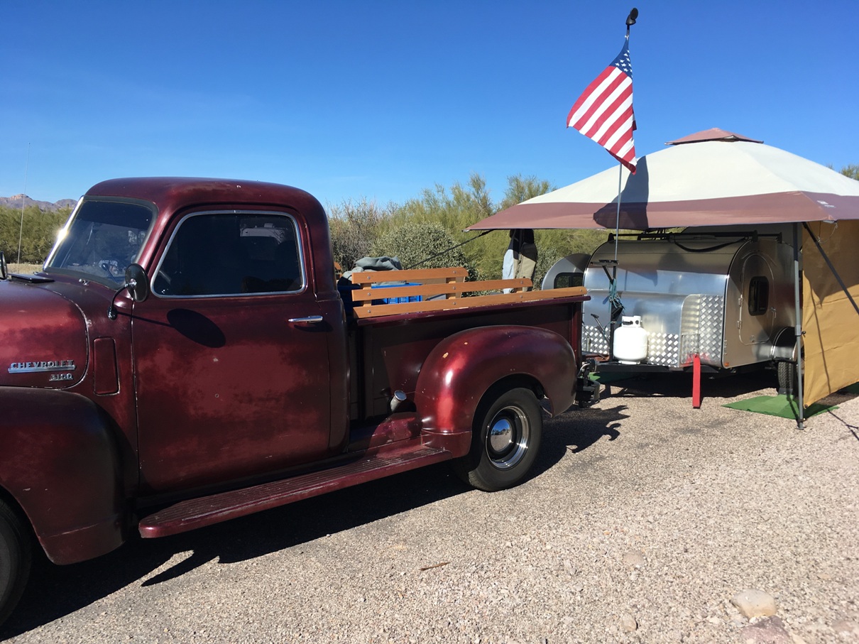 Turns out there were PLENTY of spots open in the main campground and at an especially good price of $30 a night for water and electric hookups at each site. We booked one and waited impatiently for our first desert camping excursion for the Arizona “winter” season and our first teardrop or vintage trailer event in quite a while.